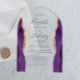 Dieses elegante, bogenförmige moderne Hochzeitsinklusive besticht durch lila Aquarellwände, die mit Imitaten Rose Gold Glitzer bestickt sind. Der anpassbare Text kombiniert handschriftlich, kopperplate und kursiv Schriftart in Holzkohlegrau auf einem klaren Hintergrund.
