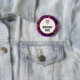 Geburtstagsknopf mit abstraktem Muster und Marmordesign. Reiche lila Farbkombinationen, kombiniert mit Imitat-Gold schwirbelnden Farbbändern, die das gesamte Design durchziehen. Ein Kreis mit einer goldgeflochtenen Imitat-Folie, die oben mit dem Text im Inneren platziert ist, sowie ein niedlich rosa Aquarellballon mit dem Geburtstagsmädchen im Inneren.