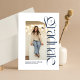 Dieses moderne und stilvolle 2-Foto-Marineblau-Abschluss eignet sich hervorragend für den kühlen und trendigen Absolvent. Dieses Design mit einem einzigartigen Gewölbe-Foto an der Vorderseite mit fett-modernem Stil hat auch Platz auf der Rückseite für ein zweites Foto und Graduiertenpartyeinladung. Diese Kombination aus Abschluss-Ankündigung und Graduiertenparty ist perfekt für High School- oder Uni-Noten und funktioniert gut für Typ oder Mädchen. Das vordere Foto ist vertikal und die Rückseite horizontal. Finden Sie koordinierende Stücke und mehr Farben in der Kollektion von Lea Delaveris Design. Dieses Programm ist auch als Einladung zum Download der Digital Graduation Party erhältlich.