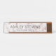 Namensschild des modernen rosa Marmorschreibtisches schlossen den Namen- und Jobtitel des Angestellten im stilvollen Schriftart ein. Kann mit Ihrer kundenspezifischen Text- und Schriftartart, Größe und Farben völlig personalisiert sein.