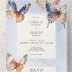 MIT QR CODE ODER MIT ODER OHNE ABENDESCHOICE VERFÜGBAR. Erleben Sie den rustikalen Charme des Naturgartens mit unserer zauberhaften Hochzeit in einer Einladung. Handbemalte Schmetterlinge in Aquarellfarben bringen eine faszinierende Farbdarstellung zum Leben. Schöne Beige-, Braun-, Terrakotta-Rost-, aquamarin-Blau- und Cremetöne schaffen ein Gefühl von gemütlicher Eleganz. Ein blauer Aquarellhintergrund Set die Bühne für dieses Design. Dieses Design verkörpert das Wesen der Natur und lädt Ihre Gäste ein, Ihre Liebe inmitten ihrer Schönheit zu feiern. Erstellt von der einfachen Farmhouse Press.