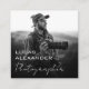 Ein elegantes und modernes Visitenkartendesign mit einem vollen Foto auf der Vorderseite, in dem Ihr Name und Ihr Titel hervorgehoben dargestellt werden. Auf der Rückseite finden Sie einen QR-Code für den einfachen Zugriff auf Ihr Portfolio sowie Ihre Social Media Icons und Kontaktdaten. Dieses elegante Design ist ideal für Fotografen, die eine minimalistische, aber berufliche Art und Weise suchen, ihr Geschäft zu fördern. Personalisieren Sie es mit Ihrem Foto und Details, um eine wirklich einzigartige Karte zu erstellen, die Ihre Marke widerspiegelt.