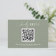 Moderne Minimal Sage Green Boho Hochzeit QR Code RSVP Card. Monogramm hinten.