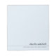 Hellblaues oder benutzerdefiniertes Notizblock mit einer dünnen Grenze zwischen Ihrem Namen und dem benutzerdefinierten Text. Der Text ist rechts ausgerichtet. Schriftart und Farben können mit dem Designwerkzeug angepasst werden.