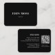 Moderne Minimal Black QR Code Business Card. Bearbeiten Sie Ihr Produkt in wenigen Minuten, indem Sie Ihre Daten hinzufügen. Personalisieren Sie Ihren Namen oder Firmennamen. Diese doppelseitige Karte ermöglicht Ihnen viel Platz auf der Rückseite für Ihre Kontaktinformationen und Details.