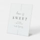 Direkt zum Desserttisch oder zur Süßigkeiten-Bar mit diesem schlichten Podestschild mit "Liebe ist süß, bitte eine Leckerei" in eleganter handgeschriebener Schrift und klassischer Serifenschrift. Farbe: Asche, ein weiches Schwarz.