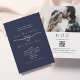 Treten Sie mit unserer minimalistisch marineblauen All-in-One Hochzeitseinladung in moderne Eleganz ein. Diese Einladung, die mit einem silbernen Seilherz und einem einfachen Drehbuch ausgestattet ist, strahlt Eleganz aus. Personalisieren Sie es mit einem Foto des Ehepaares und fügen Sie einen QR-Code für bequemen UAWG und Zugang zu Ihrer Hochzeitswebsite ein. Set den Ton für Ihren besonderen Tag mit diesem eleganten und stilvollen Design, in dem jedes Detail die Schönheit Ihrer Liebe widerspiegelt.