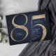 Moderne minimalistische 85. Geburtstagsfeier Einladung mit stilvollen Imitate Gold Glitzer Nummer 85 und Ihre Party Details in klassischen Serif-Schriftart auf marineblau Hintergrund, einfach und elegant, große Überraschung Erwachsenengeburtsterladung. Die Hintergrundfarbe kann in jede beliebige Farbe Ihrer Wahl geändert werden.