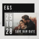 Erzählen Sie Ihren besonderen Tag mit dieser fett-schwarzweiß-Foto-Save the Date Karte. Mit übergroßen Initialen, knackiger Typografie und einem sauberen Design ist es ideal für Paare, die ein modernes und minimales Aussehen suchen. Vollständig editierbar, um Ihren Stil Anzug.