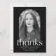 Moderner Abschluss danken Ihnen Karten mit dem Foto des Absolventen gerahmt durch einen schwarzen bogenförmigen Rahmen. "Danke" wird in weißer, modernisierter Schrift dargestellt. Personalisieren Sie die Vorderseite des trendigen Abschlusses danke Ihnen Karten, indem Sie den Namen des Absolventen, den Namen der Schule und Abschluss Jahr. Die Karte kehrt sich um, um Ihre benutzerdefinierte Nachricht mit einem Hintergrund aus schwarz-weißem Kreis anzuzeigen.