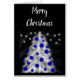 Frohe Weihnachtsgrüßkarte mit schwarzem Hintergrund auf der Vorderseite und eleganter weißer Weihnachtsbaum mit blauen Ornamenten und Sternen auf der Vorderseite Inside-Karte grauem Hintergrund mit "Wishing You A Frohe Christmas" und Sie können die Phrase Back of card mit schwarzem Hintergrund und "Santa's Watching" anpassen, um Ihre Wünsche anzupassen