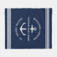 Ein klassisch marineblaues Vlies mit der Phrase "Welcome Bard" und dem eigenen Namen und der Lage des Bootes, das die perfekte personalisierte Touch für jedes Seefahrerabenteuer ist.