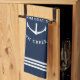 Kochnische Handtücher in marineblau lesen "Willkommen an Bord", sowie Ihr eigener Bootsname und Ihre Lage.