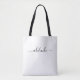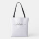 Moderne Schwarz-weiße Girly Script Monogram Name Niedlich Tote Bag. Personalisieren Sie diese elegante mit Monogramm Tasche mit Ihrem Namen in einer einfachen klassischen Schrift Typografie. Perfektes Geschenk für sie, Reisegeschenk, Hochzeitsgeschenk, Geschäftsgeschenk oder zurück zur Idee der Schule.