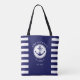 Moderne Navy Blue Nautical Anchor Tote Bag .