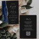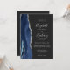 Der links Rand dieser eleganten, modernen Hochzeitseinladung besticht durch eine marineblau-blaue Aquarellgrenze, die mit Imitaten aus silberem Glitzer bestickt ist. Der anpassbare Text kombiniert Handschrift, Copperplate und kursiv Schriftart in hellsilbergrauem, dunkelkohlegrauem Hintergrund. Die Rückseite bietet Platz für Hochzeitsdetails auf einem soliden, schwarzen Hintergrund, zusammen mit einem QR-Code, den die Gäste scannen können, um Ihre Website und UAWG zu besuchen, was die Kosten für den Druck und das Verschicken separater RSVP-Karten rette.
