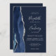 Moderner Navy Blue Silver Agate QR Code Hochzeit Einladung