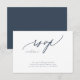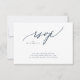 Moderne Navy Blue White Simple Wedding RSVP Response Card - für eine moderne Hochzeit formell oder informell. Navy Blau und Weiß mit beeindruckender moderner Kalligraphie. Extravagante schöne Kalligraphie. *QR CODE UAWG BACK