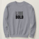 Stehen Sie mit Zuversicht da! Dieser kühn schwarze T - Shirt präsentiert den inspirierend Slogan LIVE BOLD in einem auffallend weißen und neongrünen Design. Ideal für Streetwear-Liebhaber und alle, die woll haben, ihren furchtlosen Stil auszudrücken.