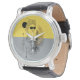 Uhr, Vintage Männeruhr mit schwarzem Lederarmband