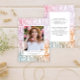 Moderne zeitgenössische grungy Foto Abschluss Ankündigung. Mit Platz für Foto und Informationen auf der Kartenrückseite. Moderne, gürtnerrosa pastellfarbene Regenbogenfarben und Weiß lassen sich an Ihren Stil anpassen.