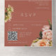 Moderner Peach Mimosa Blumenrost QR Code All In One Einladung