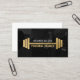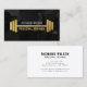 Moderne Visitenkarte für Personal Trainer. Auf der Karte befinden sich goldfarbene Imitate, die auf dem dunkelgrauen Overlay-Foto ein Grillbild abbilden. Ideal für Personal Trainer, Trainer, Fitness-Instruktoren.