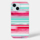 Modernes Preppy Cyan Magenta Watercolor Stripe Muster Personalisiert Name iPhone 15 Hüllen bietet Ihren personalisierten Namen, Monogramm oder Initalien in einer einfachen Skripttypografie auf einem modernen cyan und mageneta Wasserfarbe Streifen Hintergrund. Perfektes Geschenk für sie zum Geburtstag, Mutter zum Muttertag, Schwester oder Bestie für Weihnachten und Feiertage. Entworfen von ©Evco Studio www.zazzle.com/store/evcostudio