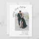 Schöne Einfachheit und künstlerischer Boho Stil machen diese moderne Bogen Hochzeit speichern Sie die Dattelkarte Pop mit Anziehungskraft. Es verfügt über eine bogenförmige Fotoplatte auf der Kartenvorderseite, um Ihr gewünschtes Foto hochzuladen. Auf der Vorderseite der Karte befindet sich eine Textvorlage, die Sie mit den Namen der Braut und des Bräutigams und dem geplanten Hochzeitstag personalisieren können. Auf der Rückseite dieser Karte befindet sich eine Beispielnachricht mit zusätzlichen Details, die Sie personalisieren können, zusammen mit einer QR-Code-Vorlage, die es den Gästen erleichtert, Ihre Hochzeitswebsite zu sehen. Diese Karte ist hier mit einem schlichten, weißen Hintergrund dargestellt und ist auch in anderen Farben erhältlich.