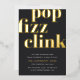Moderne und minimalistische Silvesterabende-Party Einladungen zeichnen sich durch schicken Schwarz-Weiß-Stil mit "Pop fiz clink" aus. Personalisieren Sie mit Ihren Silvester Feierlichkeiten Details unten. Einladungen kehren zu einem Muster von bunten Sternen zurück.
