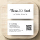 Moderne berufliche Visitenkarte mit Ihrem Namen in einem stilvollen, fett formatierten Skript und Ihren Titel und Kontaktinformationen (wie E-Mail, Telefonnummern, Firmenname und Postanschrift) in sauberer, einfacher Schrift. Fügen Sie die URL-Adresse Ihrer Website hinzu, um einen skalierbaren QR-Code zu erstellen, der mit Ihrer Website, Ihrem Portfolio, Ihrem Social Media-Profil oder einer anderen Plattform verbunden ist, die Ihre Arbeit präsentiert. Dies erleichtert Kunden und Kunden die Erkundung Ihrer Expertise.