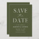 Mit unserer eleganten, modernen QR-Code-Save the Date-Karte verkünden Sie Ihre bevorstehenden Nuptials stilvoll. Das Non-Foto Save the Date enthält "Save the Date" in weißen Serifen und Skript-Schriftart mit einem olivgrünem Hintergrund. Personalisieren Sie die Vorderseite der Save the Date Karte, indem Sie Ihre Namen, das Hochzeitstermin, den Hochzeitsort und andere Einzelheiten zur Hochzeit hinzufügen. Die minimale Save the Date Karte kehrt um, um Ihren individuellen QR-Code mit Hochzeitswebsite und individuellem Text zu versehen. Perfekt Save the Date für moderne und lässige Hochzeiten!