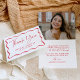 Mit diesem modernen roten Rahmen-Abschluss bedanken Sie sich herzlich für Ihre Dankbarkeit. Dieses Design mit "Danke" in elegantem, handgeschriebenem rotem Drehbuch wird durch einen fett roten, wellenförmigen Rahmen vor weißem Hintergrund gerahmt und bietet einen stilvollen und zeitgenössischen Look. Personalisieren Sie die Front mit Ihrem Namen und Abschluss Jahr für eine einzigartige und sinnvolle Touch. Im Inneren zeigen Sie oben Ihr horizontales Senior-Foto, und unten wird Ihre benutzerdefinierte Meldung in fett roten Buchstaben angezeigt. Dieses personalisierte Dankeschön-Kartenspiel eignet sich perfekt für Absolventen der Highschool und der Uni und verleiht Ihrer Wertschätzung eine lebendige und anspruchsvolle Touch.