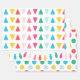 Genießen Sie ein fröhliches und helles Weihnachtsfest mit diesen farbenfrohen Regenbogenverpackungen in Sets. Ein Set von drei verschiedenen Designs: geometrische Weihnachtsbäume, Weihnachtssaiten und mehrfarbige Punkte in einer festlichen, hellen Farbpalette.