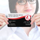 Hier ist eine moderne Reinigungsservice Visitenkartenvorlage in einem Sleek-Design in Schwarz-weißer und roter Farbkombination, die sich durch einen großen ersten Eindruck auszeichnet. Vorgestellt auf gerundeten Visitenkarten für kommerzielle oder Wohnungsreinigung.