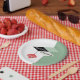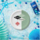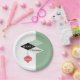 Unterhalten Sie sich während der Weihnachtsferien im Retro-Chic-Stil mit diesem modernen Design Mitte des Jahrhunderts, das geometrische Diamantformen mit fröhlichem Weihnachtstext hat. Ein Weihnachtsschmuck in leuchtendem Korallenrot hängt vom diamantenförmigen Muster. Der Hintergrund enthält ein Farbblock-Design von Weiß und Grün. Diese Papierplatte ist in zwei Größen erhältlich. Lesen Sie unbedingt die Produktbeschreibung, um die Größe auszuwählen, die Ihren Anlass am besten Anzug.