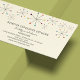 Diese individuell bedruckten Visitenkarten zeichnen sich durch ein lustiges Retro-Ambiente mit modernem Design aus. Farbenfrohe atomare Sterne oder Schneeflockenformen schmücken diese Karten. Die schwarzen Sternchen sind mit blauen, magentafarbenen, grünen, orangefarbenen und gelben Kreisen versehen. Verwenden Sie die Vorlagenfelder, um diese Visitenkarten einfach mit Ihren Informationen zu personalisieren.