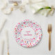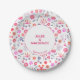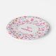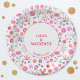 Heller Garten mit modernen pinkfarbenen und orangefarbenen Blume in verstreuten Formen auf weißem Hintergrund. Hübsch und lebendig mit frisch Bohemischem Ambiente. Koordination hübscher Teller mit Texten, die zu Anzug Ihrer Feier verändert werden können.