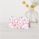 Heller Garten mit modernen pinkfarbenen und orangefarbenen Blume in verstreuten Formen auf weißem Hintergrund. Hübsch und lebendig mit frisch Bohemischem Ambiente. Koordinieren leerer Platzkarten, damit Sie Ihre Gastnamen von Hand schreiben können.