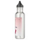 Ein modernes, trendiges Design auf einer Wasserflasche. Der Hintergrund hat ein Bild von glitzerndem, rosa, tropfendem (Imitat-)Glitzer an der Spitze. Die Erholung des Hintergrunds ist ein zarter pastellrosa Farbverlauf. Ein Paar rosa Stilettos mit hoher Ferse am unteren Rand. Personalisieren mit einem Namen.