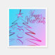 Trendy heiß rosa Neon glänzen elegante einfache Papierserviette Neujahr moderne Typografie Drehbuch mit einem stilisierten Winterbaum mit Stern. Ideal für Ihr Silvesterabend-Party!