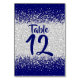 Moderner Royal Blue und Silver Glitzer Tischnummer