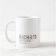 weiße schlichte berufliche Identität Tasse mit schwarzer Typografie des modernen Stils Nachname und Karriere links unten.