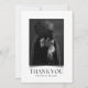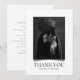 Diese moderne Schwarz-Weiß-Hochzeitskarte besticht durch ein zeitloses Foto-Design mit einem subtilen Schatteneffekt, der Tiefe und Eleganz verleiht. Der Schatten kann leicht entfernt werden, wenn Sie einen saubereren, minimalen Look bevorzugen. Auf der Rückseite ist ein vorgeschriebener Dankeschön-Text enthalten, den Sie wie behalten oder durch Ihre eigene personalisierte Nachricht ersetzen können. Ideal für Hochzeiten, Jubiläen oder jeden besondere Anlass, wo Sie gewollt, herzliche Dankbarkeit auszudrücken.