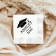 Das Design der Servietten für die Graduiertengruppe ist mit einem schwarzen Graduiertencap versehen, der den Namen und das Unterrichtsjahr des Absolventen trägt. Passen Sie die Farbe des schwarzen Schriftartes über Anpassen an.