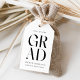 Fügen Sie Ihrer Abschlussfeier eine personalisierte Touch mit diesem modernen Abschluss Gunst-Tag! Das Geschenk-Tag zeigt "grad" in fett schwarzen Buchstaben mit einem soliden weißen Hintergrund. Personalisieren Sie die Schwarz-Weiß-Abschluss-Tags mit dem Namen, der Schule und dem Abschluss Jahr. Die Lieblingsmarken eignen sich sowohl für Party der Oberstufe als auch für Uni-Abschluss!