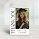 Eleganter gefalteter Abschluss Dankeschön-Karten verfügen über ein vertikales Foto des Absolventen mit modernen dekorativen schwarzen Serifen Dankeschön Text und Text, die mit dem Namen und der Klasse des Absolventen personalisiert werden können. Das Karteninnere enthält ein zweites horizontales Foto sowie eine individuelle Danksagung, die nach Belieben geändert werden kann. Das klassische Schwarz-Weiß-Farbschema und das Design sind perfekt, um Ihren High School- oder Uni-Abschluss zu feiern.