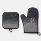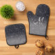 Moderner Schwarzer Glitzer Glitzern Personalisiert Ofenhandschuh & Topflappen-Set