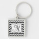 Moderner Schwarzer Glitzer Zickzack Zig Zag Stripe Monogram, erste Schlüsselkette