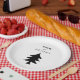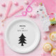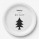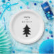 Dieser moderne Feiertagspapier-Teller kennzeichnet einen schwarzen Weihnachtsbaum auf einem weißen Hintergrund, und die fröhlichen und hellen Wörter "."